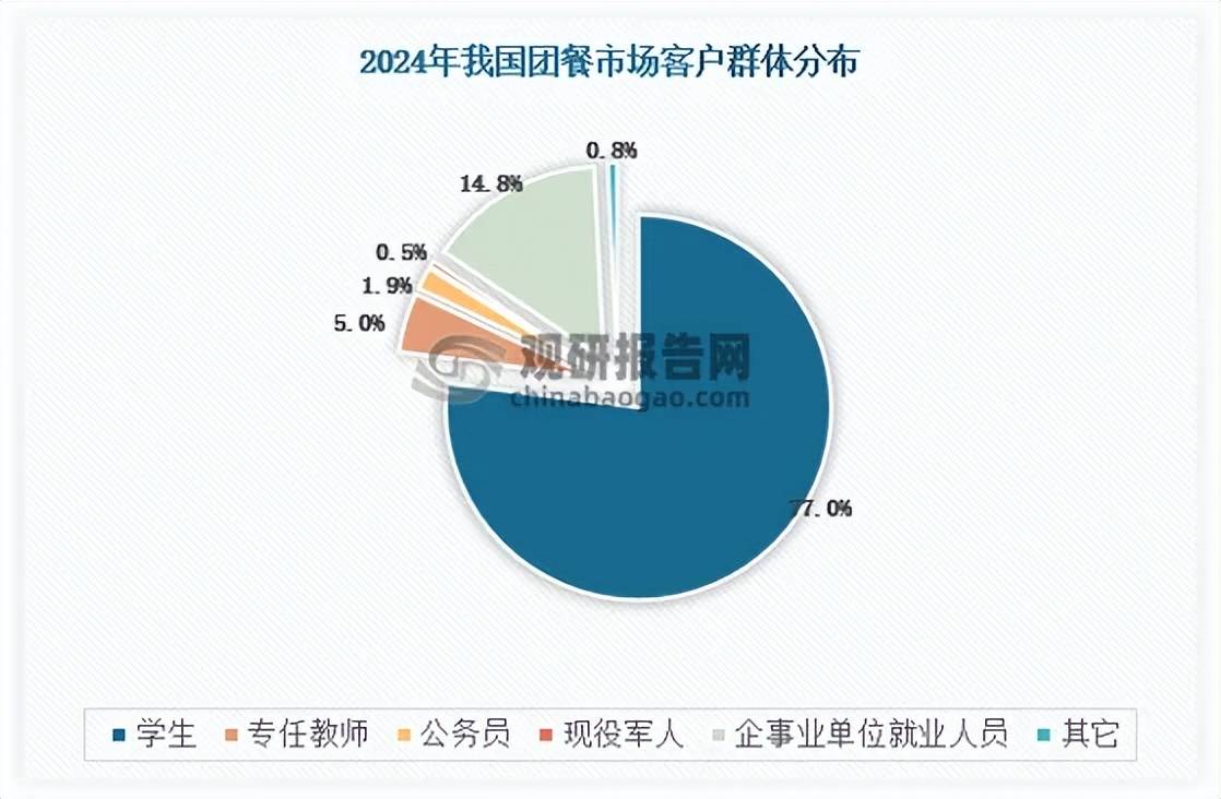从我国团餐消费群体来看,中小学、高校及机关事业单元逐步成为团餐消费的次要群体,此中学生群体成为了最为显著的消费群体,占领了团餐消费者总数的77%。此外,跟着中国生齿老龄化的成长,集中养老及住院人数的上升,养老餐及病院养分餐的消费不竭增加。将来,大数据取外卖平台等科技的成长,将推进团餐企业吸引线上平台外卖范畴的客户,进一步扩大了受众群体,添加团餐需求。