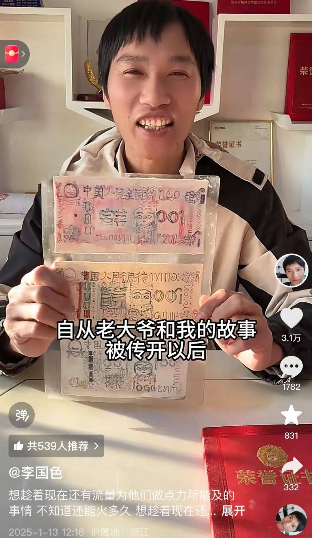 但其实,这位苍南一家通俗面店的老板,更广为人知的身份,是曾收下一位白叟长达九年“手绘纸币”的“傻子”,也是现在筹集超160万元、赞帮近200个窘境家庭的“浙江”。李国色的鲜面店,每天早上5点开门,晚上7点打烊,半夜会操纵空余时间给坚苦家庭送面送爱心,赶上农忙收获时,还要曲播帮农。“每天睡不到6小时,”李国色笑着说。这位前来寻求帮帮的女孩是李国色赞帮的学生之一。“她母亲是从贵州嫁到苍南的,父亲早逝,母女俩相依为命。”由于母切身体一曲欠好,李国色辗转晓得两年前初三的她,可能面对停学,就毫不犹疑选择赞帮了她。“她很乖,妈妈生病住院,都是她陪护、列队、护理,初三下学期就请了两个月假,成就也拖了。”李国色不忍心地说,“我跟孩子说,进修是你独一的出。不读书,出来打工都难。”每个学期开学,大米和五千到一万元不等的帮学金,到女孩家里探望,“孩子现正在成就也不错,她妈妈爱吃我们家的面,但她老正在我不正在的时候过来买,怕我不收钱。”李国色说。如许的故事,正在李国色的公益名单上并不鲜见。他赞帮的对象,大多是单亲、残疾、沉痾或得到顶梁柱的家庭。2011年,一位缄默寡言、穿着陈旧的白叟,第一次走进他刚搬到老街的面店。白叟一手捏着一元实币,一手攥着本人画的“纸币”,摆布手同时伸出,眼神躲闪,不知该递哪一张。李国色笑着接过了那张画得歪歪扭扭的“钱”,回身递了一份面。白叟不措辞,只是点点头,拿了面便分开。白叟几乎每天来,一个月来二十天。他总正在角落恬静期待,等客人了,才慢慢接近。他不措辞,只吃固定一种耐存放的熟面。后来李国色才晓得,白叟家里没锅,只能用开水泡着吃。四周人和网友笑他傻,“这钱你也收?”李国色却感觉,若不收下,反而伤了白叟的自大。“他认定你这小我,用再好的吃食换,他都不换。”2020年,李国色将白叟的故事发上彀,不测走红。网友被白叟的画触动,也佩服老板的善良,纷纷暗示想要给爷爷寄衣物和食物,也有网友暗示想要一张爷爷画的纸币。于是,李国色便以本人的面条和一张白叟手绘的“纸币”做为回礼,寄给远方的爱心人士。